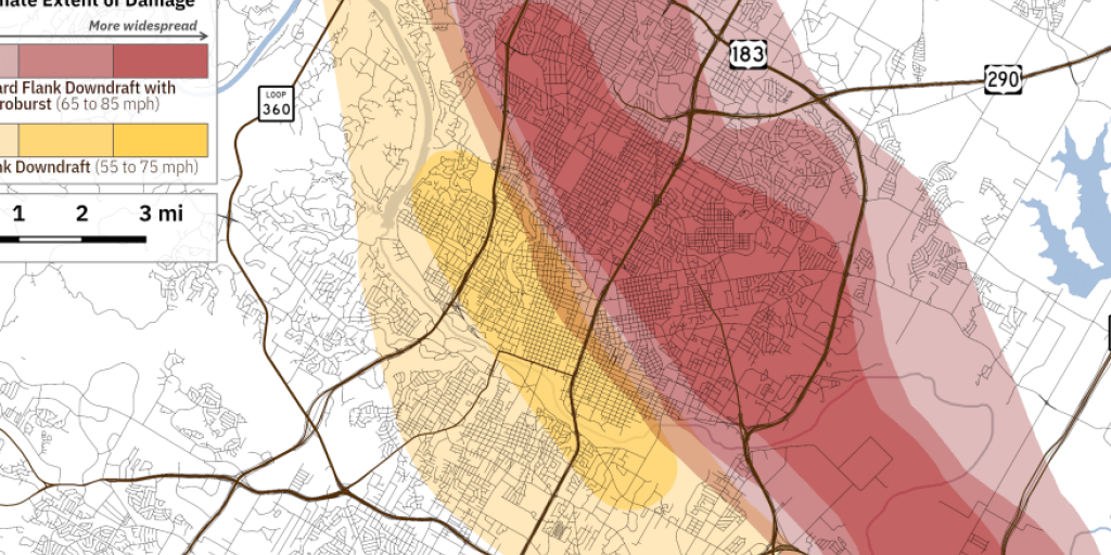 National Weather Service releases map of Austin microburst wind damage