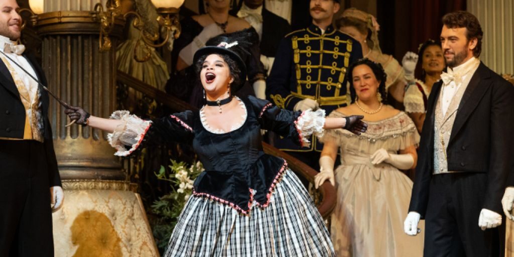 Evan LeRoy Johnson, Julie Roset, Ben Brady and Ricardo José Rivera as Count Elemer, Fiakermilli, Count Lamoral and Count Dominick. Photo: Marty Sohl/Met Opera The Metropolitan Opera’s production style...