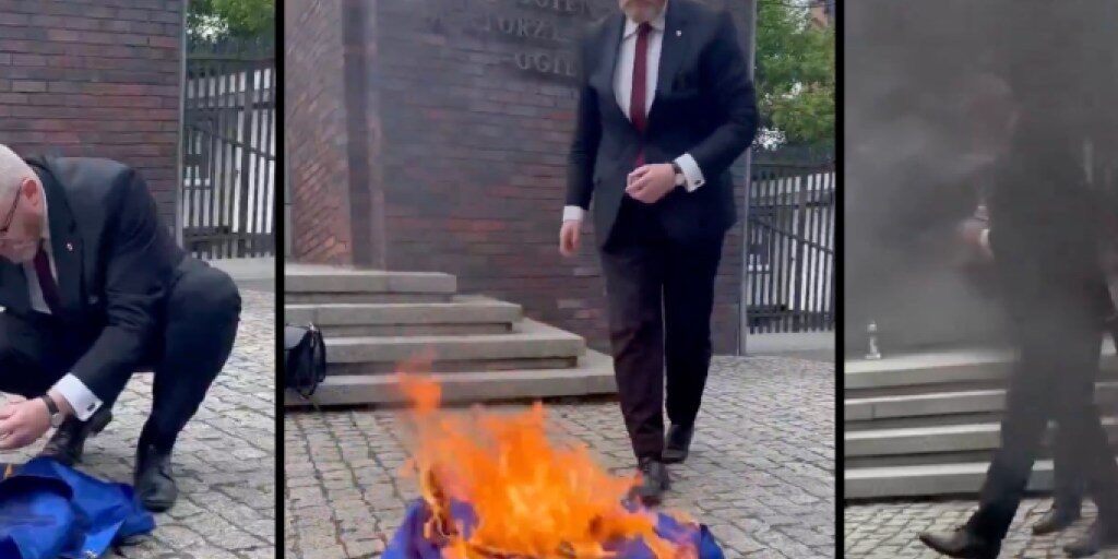 WATCH: Far-Right Politician Rips Down, Burns EU Flag After Losing Immunity Over Antisemitic Disruptions