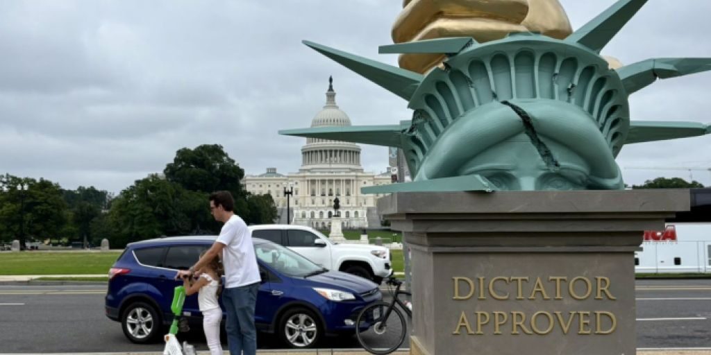 A new statue has appeared on the National Mall in Washington DC, seemingly branding President Donald Trump a dictator and featuring quotes that purport that message.The statue features a...