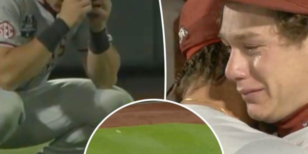 Arkansas’ Charles Davalan in tears after season-ending blunder in College World Series